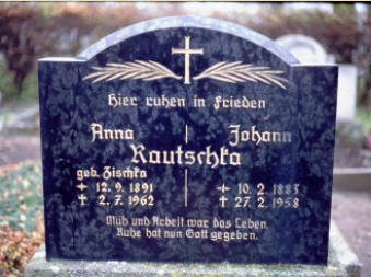 Johann Rautschka,geb. 10.Feb.1883 in Klein-Mallowa Nr.4 Johann heiratet am 17.Feb.1914 in Mogolzen Anna Zischka, geb. am 12.Sept.1891 in Tscharlowitz Nr.1, die Tochter von Johann Zischka aus Tscharlowitz Nr.1 und Johanna Mayer (die Eintragung in den Kirchenbücher bei Taufe und Ehe “Routschka” ) Johann und Anna hatten 2 Söhne: Kinder :Georg geb.29.April 1920 Johann geb.29.Aug. 1927
