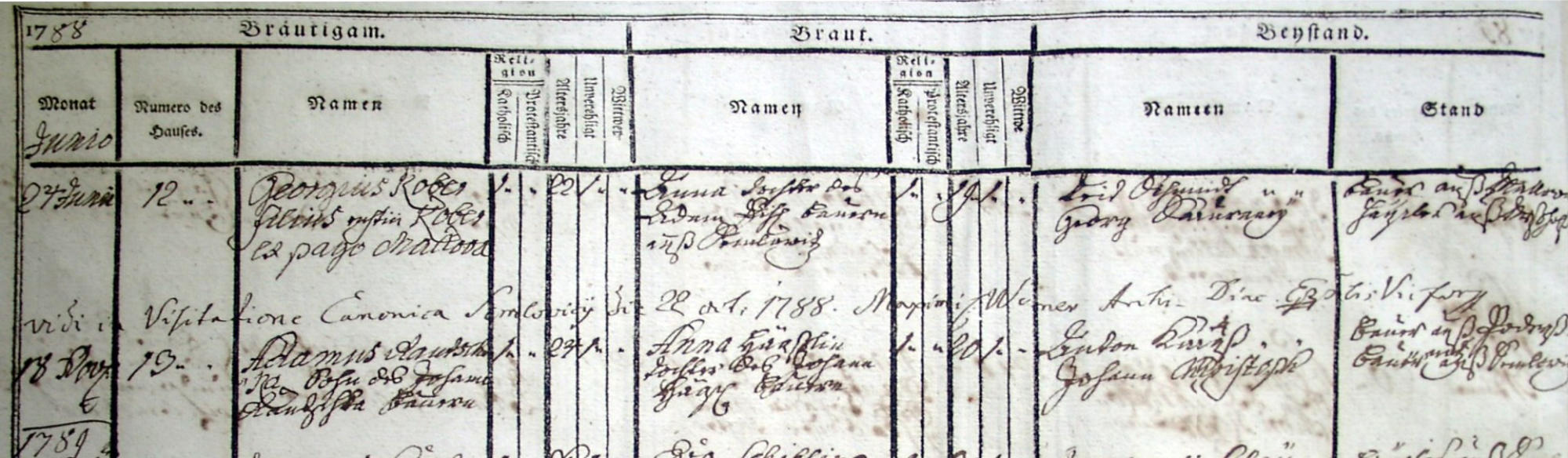Adam Rautschka geb. 19.Feb.1766. Er heiratete Anna Haasl am 18. Nov 1788 in Hoch-Semlowitz,