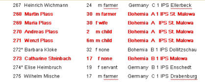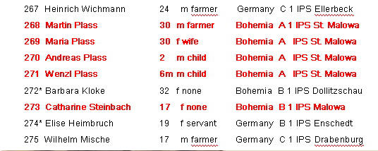 Catharina folgte Ihres Schwester Anna in die "Neue Welt" Sie landete am 15.Mai 1885 in New YorkCatharina Steinbach aufgenommen um 1890Catharina ist am bereits 24. Jan. 1895 in Milwaukee verstorbendieses Bild wurde mir freundlicherweise vonSusan Bigalke-Chapman zur Verfügung gestelltMit Catharina sind noch weitere Einwohner aus Klein-Mallowa auf die große Reise gegangen.Wie aus den Passagierlisten zu ersehen ist waren noch Martin Plass aus Klein-Mallowa Nr.13 und seine Frau Maria, eine geborene Mahal aus Mogolzen Nr. 13, mit Ihren Kindern Andreas und Wenzl dabei.